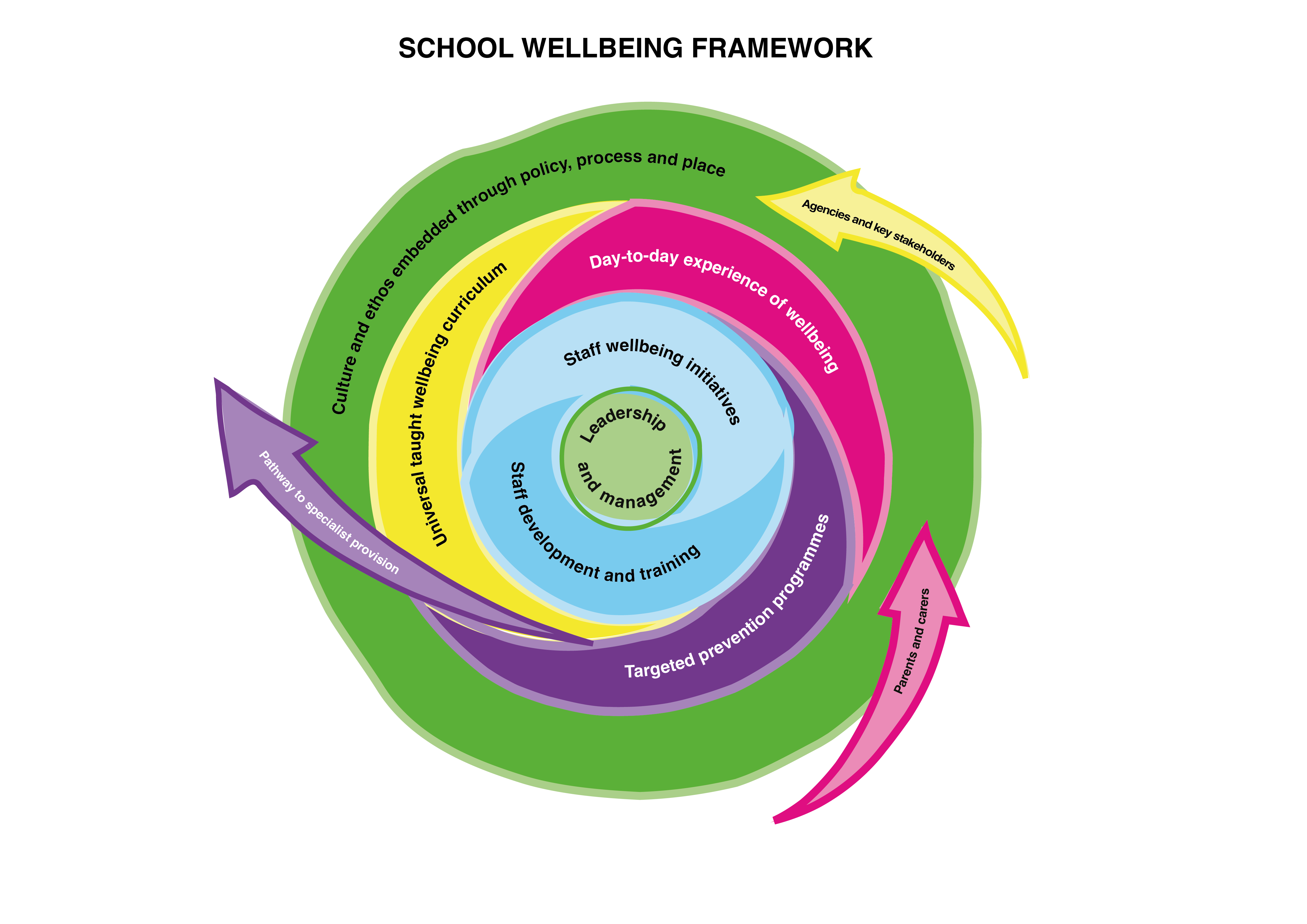 Our strategic wellbeing framework expands on the SEARCH approach by embedding its core strategies throughout every layer of school life, fostering a culture where wellbeing is central to learning, relationships, and overall school success. By integrating character strengths, emotional management, awareness, relationships, coping mechanisms, and goal-setting into the curriculum, ethos, and daily interactions, schools create an environment where every student and staff member can thrive.